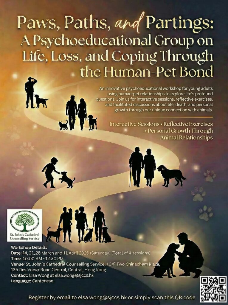 Venue: St. John’s Cathedral Counselling Service, 10/F Two Chinachem Plaza, 135 Des Voeux Road Central, Central
